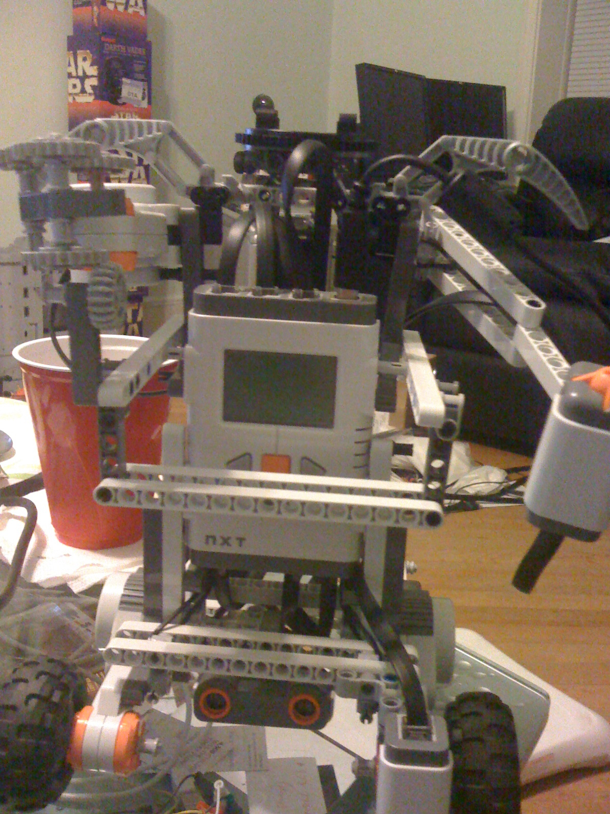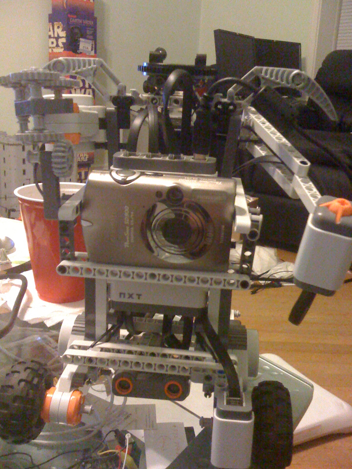 The first steps came as I pulled out the Mindstorms kit and began building the framework. As the framework came together, the first of the changes to my original concept came as I chose to make the robot mobile. The base of the framework was built onto wheels and motors to allow the robot to move around to take pictures – knowing I would not be able to let the robot move around during Brickfair, I still felt it would be good for future use.
