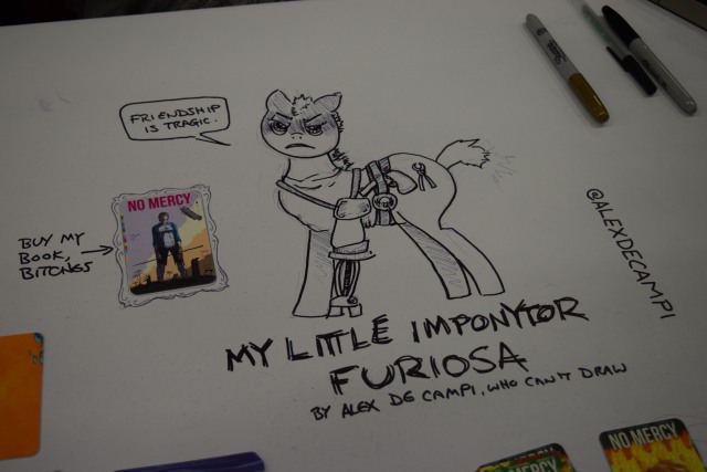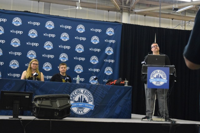 Walking in to Pier 94 had the vendors up front, with some off to the side and others ahead on the way to the large artists alley. Off to the right were two large curtained areas that were used for panels, but they were less than effective for containing the panels. Straight back was a large assortment of writers and artists who were drawing, promoting, and talking about comic books that they worked on. A few artists and writers had significant lines – the largest ones belonging to Scott Snyder of Batman fame and Jason Latour and Robbi Rodriguez, creators of Spider-Gwen – but most were easily approachable and affable about talking about their work.