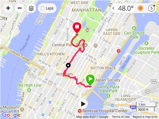 I lined up at 47th St and 1st Ave, with Andrea and her friend as we got ready for our 3.1 mile journey. Heading south on 1st Ave was a bit slow as it was packed in and I was barely able to run. I hopped the corner onto the sidewalk as we turned right on 42nd St and I was able to begin my race in earnest. Runners filled the street as far as we could see as we headed west and ran past Grand Central Terminal. We turned right onto 6th Avenue at the one mile marker and headed north past such landmarks as Rockefeller Center and Radio City Music Hall as we approached Central Park. We turned into the park at the southwest corner and began the approach the marathoners would take the following day. We headed up and around the Sheep’s Meadow to the lower loop of the park which curved around to the west side drive. As we ran north, we could see the fences then the flags that runners would see as they approached the finish line of the race. The stretch led us up and let us finish our race where others would finish their 26.2 mile journey the following day.