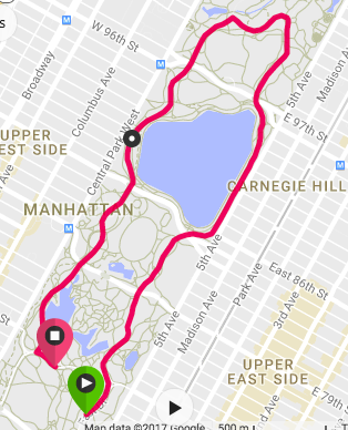 We started on the east side of the park and headed north as our corrals were released with the sound of the horn. We quickly passed the 72nd street transverse and headed up cat hill. The famous statue was upon our left side before we had gotten very far and passed the 85th street transverse for the first mile marker. Without stopping we continued up the east side until we got to the 102nd street transverse and turned left. The second mile marker was in the middle of the transverse as we headed west until we turned left and headed south. Straight down the west side to 72nd street and turning left onto the transverse to complete our four mile course around Central Park to complete my first race of the year for the 9+1.