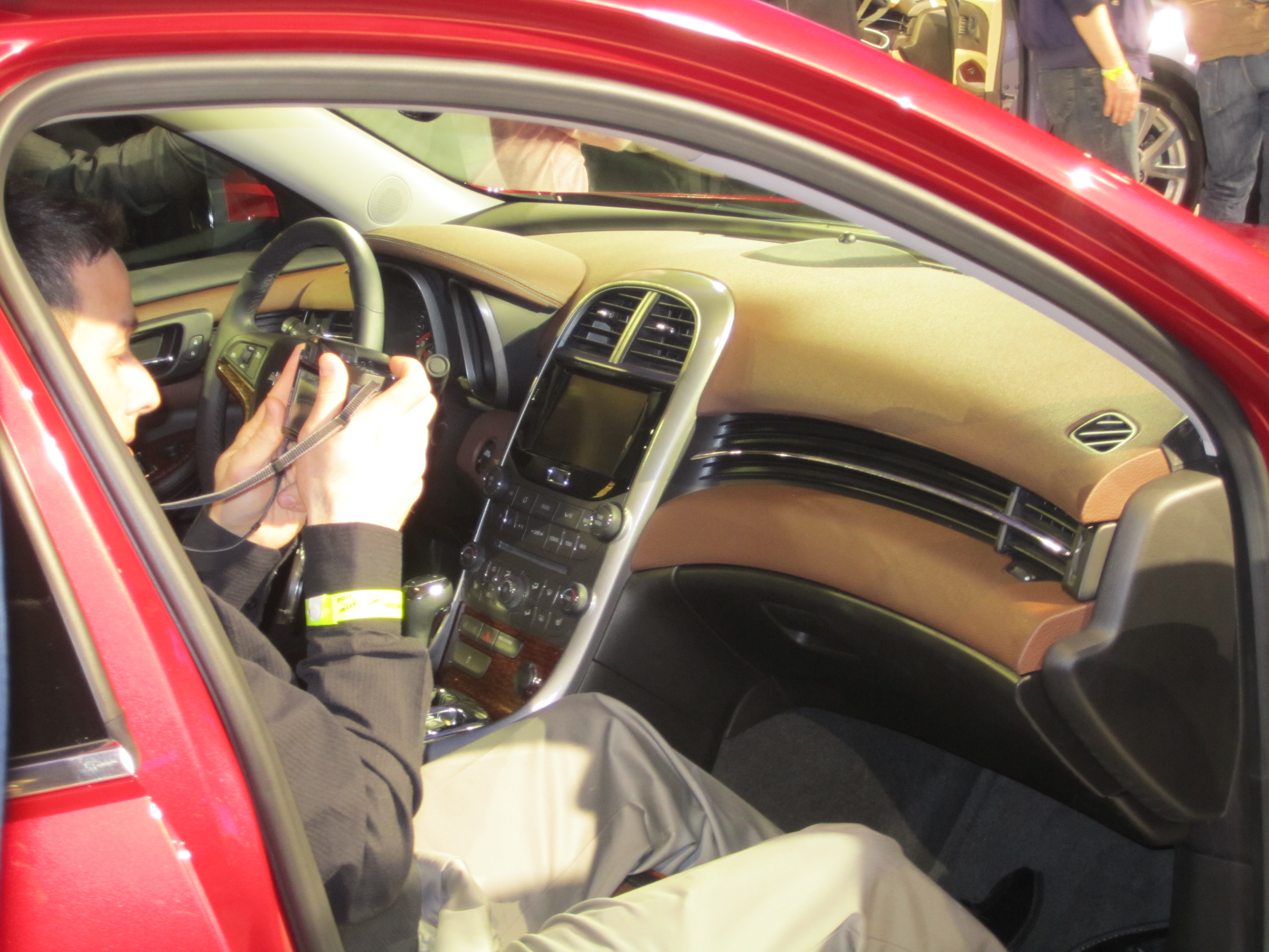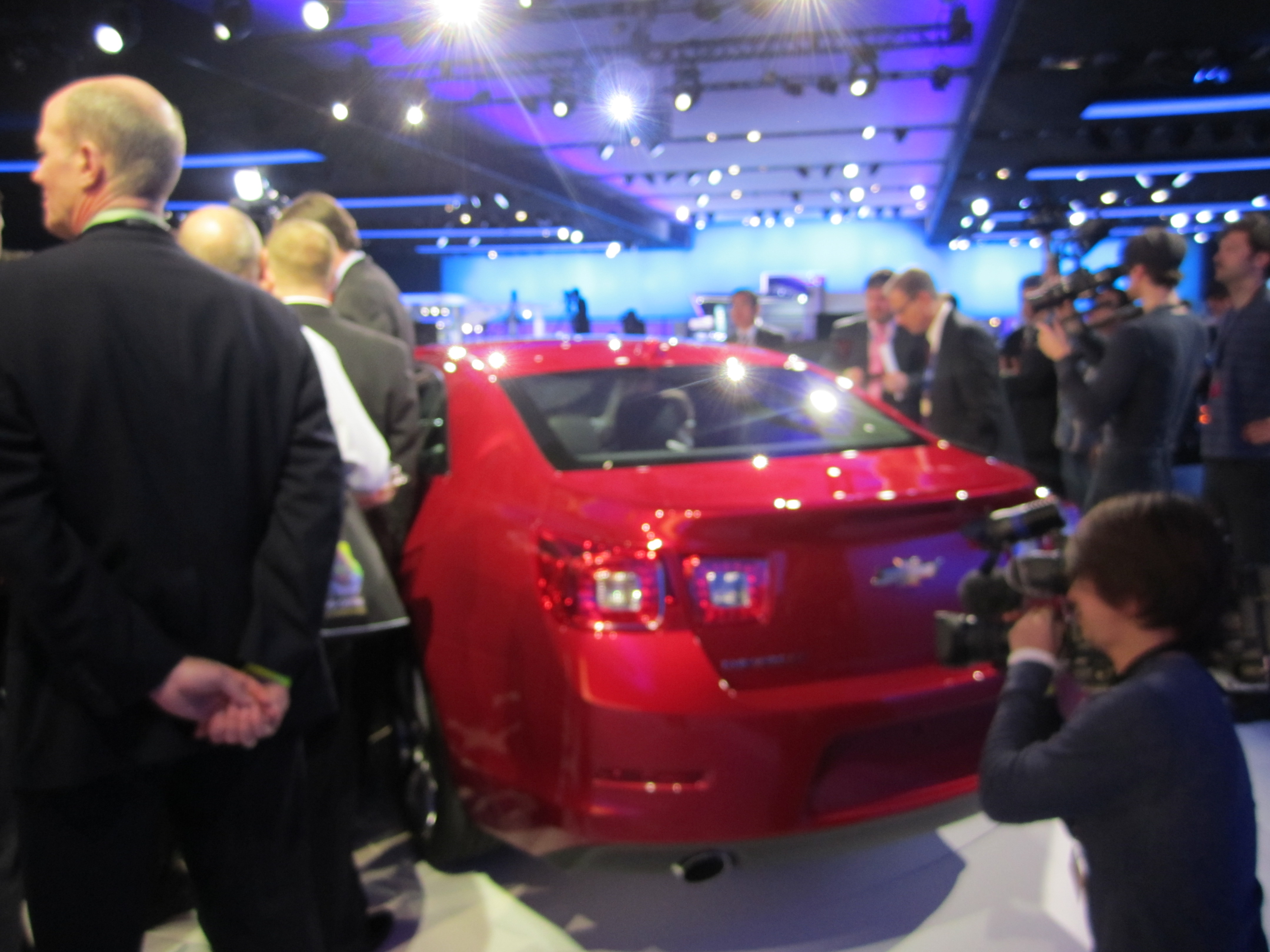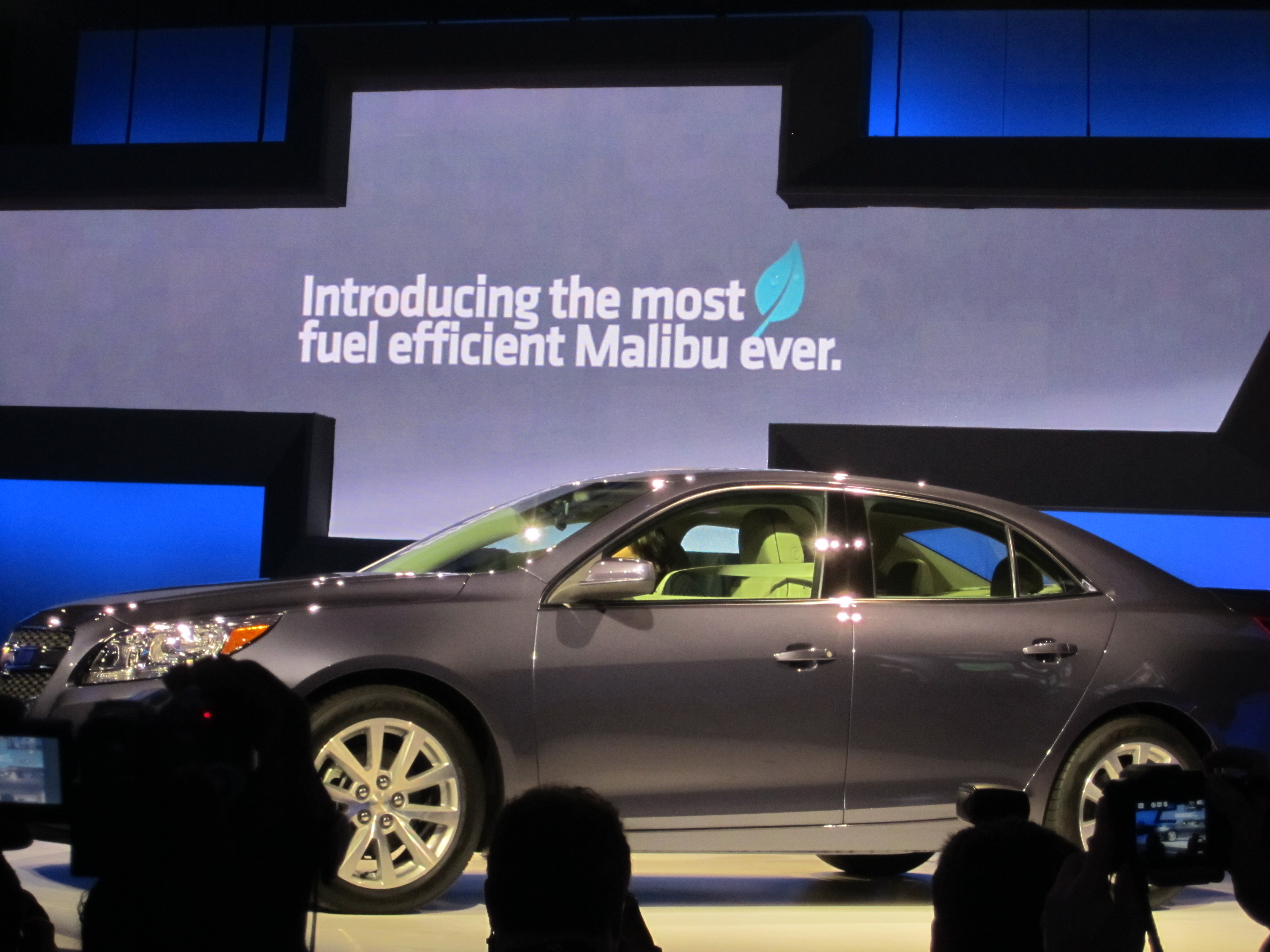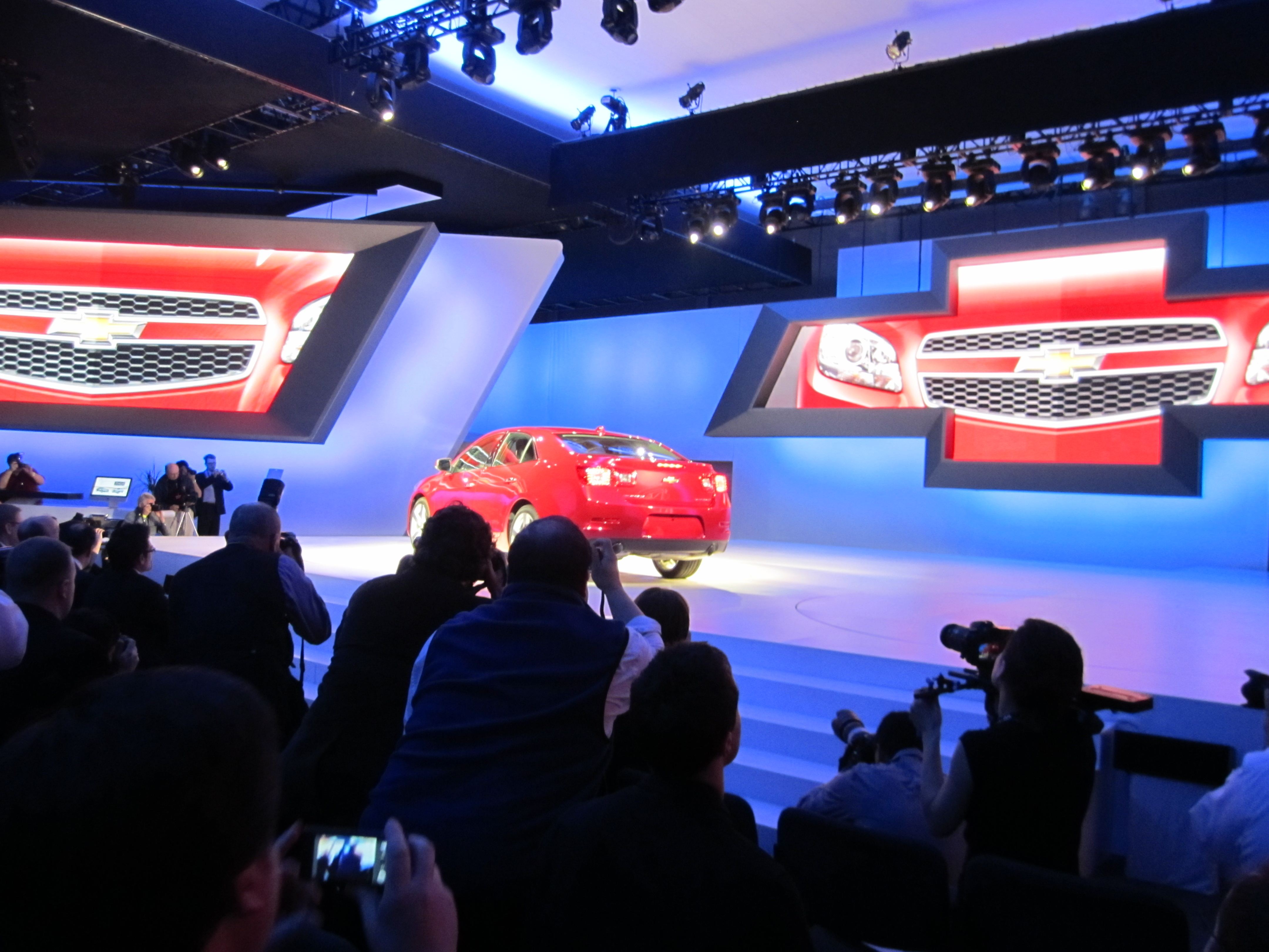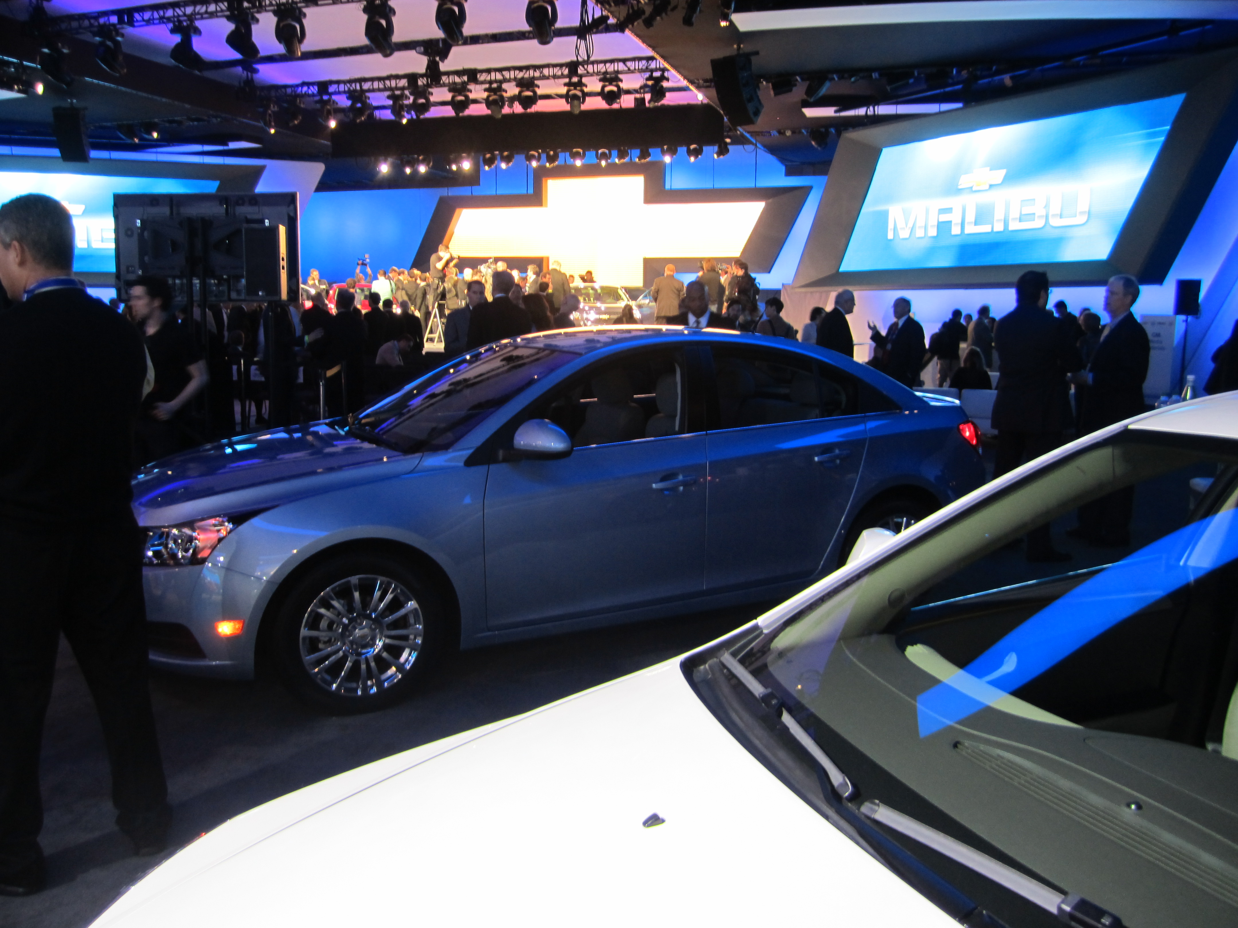 The big announcement at the Auto Show was the new Chevy Malibu. Coming in early 2012, the new Chevy Malibu is a sleeker, more aerodynamically shaped than the previous model. Inside, the new Malibu is sportier and has more room with the color touch screen radio and Chevy MyLink to connect a smartphone to the radio and use apps like Pandora and Stitcher Radio natively with the radio. The Malibu also has a rear camera that appears on screen when in reverse, which was a feature I really liked on the Equinox during the Chevy SXSW Road Trip and made it easier to back up and parallel park.